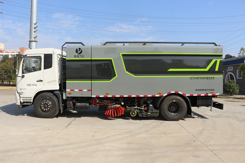 1.CLT5180TXSD6型洗掃車適用于城市道路、高速公路、廣場、機(jī)場、碼頭、遂道、橋梁、隔離墻避、路緣和路緣石立面的機(jī)械化清洗、清掃、噴霧降塵等清潔作業(yè)。具有路面清洗、路面清掃、路緣清洗、路緣和路緣石立面洗刷、低壓沖洗、噴霧除塵等多功能。有“全洗掃”、 “右洗掃”、 “全掃”、 “右掃”4種作業(yè)模式可選擇。選擇“全洗掃”模式清洗廣場和路面,清洗效率高效果好,洗凈率達(dá)90%以上。選擇“左洗掃”或“右洗掃”模式清洗路面和路緣、洗刷路緣石立面。需要進(jìn)行路面清掃或路面保潔作業(yè)時,可選擇掃路模式。需要噴霧除塵時,可開啟噴霧裝置,進(jìn)行噴霧除塵作業(yè)。可以像灑水車一樣對路面進(jìn)行低壓沖洗作業(yè)。