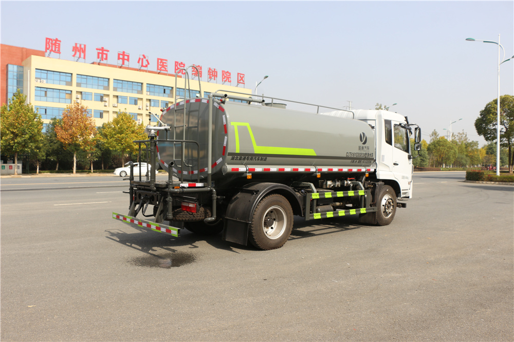 • 專用功能配置:罐體實際容積12.立方米,采用武鋼優(yōu)質(zhì)碳鋼板卷壓成型。配備專用灑水泵,自吸自排。前噴后灑、側(cè)噴、后工作平臺及灑水高壓炮。灑水泵垂直自吸高度為6米左右,整車灑水寬度14米左右,后工作平臺水炮可調(diào)成:直沖狀、大雨、中雨、小雨毛毛雨,有效射程28,整車帶接頭水位計,自流閥。后工作平臺主管道有一個一寸的澆花接口,附送23米水管,1個爬梯,兩側(cè)及后保險杠。