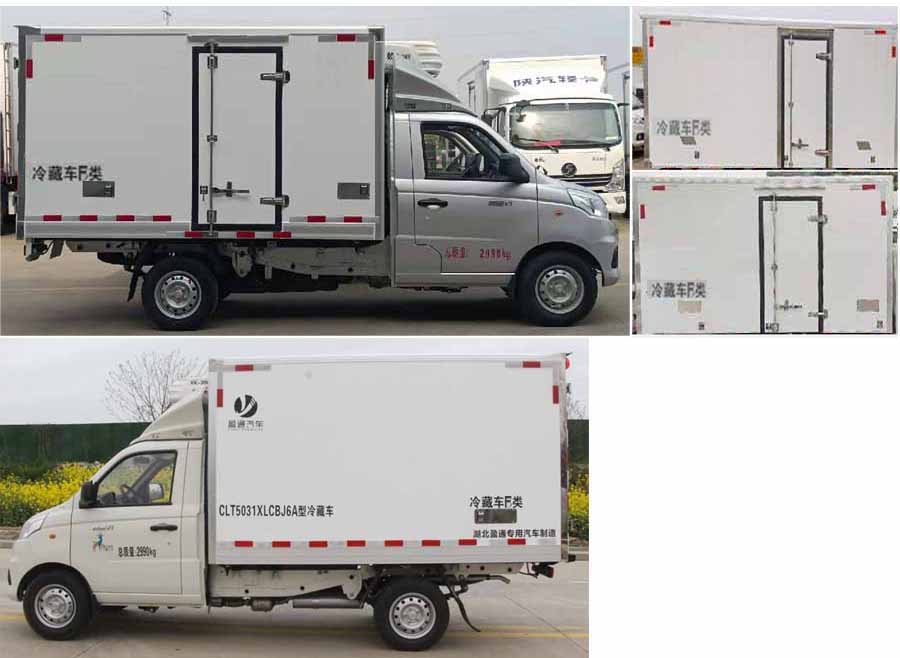 該車用于冷藏運輸?shù)膸狡?裝備有隔熱結構的車廂和制冷裝置;貨廂頂部封閉,不可開啟.ABS系統(tǒng)控制方式是雙參數(shù)控制,ABS系統(tǒng)控制器型號是YF9,ABS系統(tǒng)控制器生產企業(yè)是武漢元豐汽車電控系統(tǒng)有限公司.發(fā)動機DAM15KR,DAM16KR分別對應的最大凈功率為80kW,85kW,分別對應最高車速100km/h,110km/h.發(fā)動機與油耗申報值(L/100km)對應關系為:DAM15KR/8.1,DAM16KR/7.5;選裝直接供電式ETC車載裝置.隨底盤選裝新前格柵和不帶導流罩.選裝側門樣式,選裝后部樣式;選裝同等功率制冷機組,外觀形狀可不同.該車型整備質量包含備胎、滅火器、隨車工具.貨廂重量為485kg,底板材質為玻璃鋼+擠塑聚苯乙烯,厚度為75mm或者79mm,側板材質為玻璃鋼+擠塑聚苯乙烯,厚度為75mm或者79mm.選裝廂體無側門樣式.