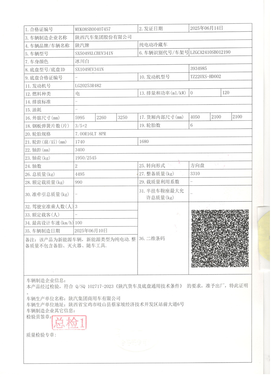 陜汽智云S300(K8-140.41度電)純電動(dòng)冷藏車