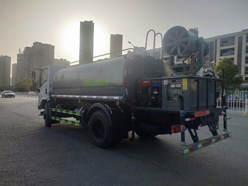專用部分:帶前沖、后灑、側噴、后工作平臺、尾部帶綠化炮,帶自吸自排灑水泵,后工作平臺高壓水炮直沖射程25-30米(可調(diào)成:直沖狀、大雨、中雨、小雨、毛毛雨),整車帶消防接頭、自流閥。附送2根水管。加裝30型霧炮,霧炮可以遙控操作。