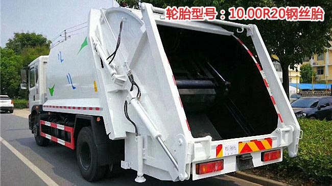 容積12~14立方米,弧形箱體,邊4底5碳鋼材質(zhì),內(nèi)有推板、刮板、后翻轉(zhuǎn)、后部鎖緊門(mén),國(guó)內(nèi)品牌油缸、多路閥、油泵,高密度液壓油管。