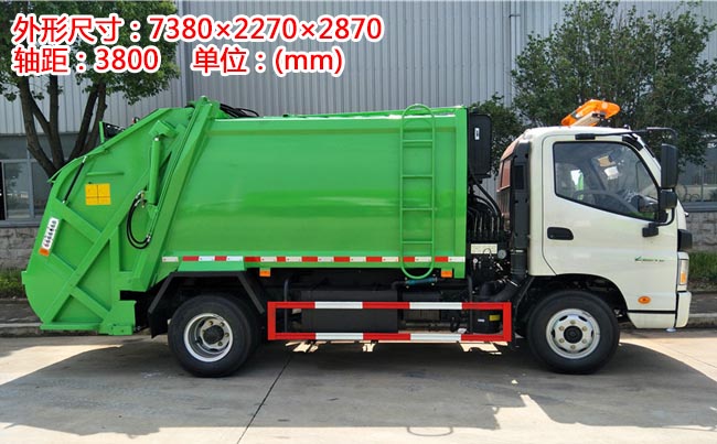 福田歐馬可壓縮式垃圾車,2.05米寬駕駛室、單排前翻、康明斯154馬力,6檔變速箱、軸距3.8米,6噸后橋、7.50R16鋼絲胎、動力轉(zhuǎn)向、空調(diào)、定速巡航、離合助力、斷氣剎、ABS。