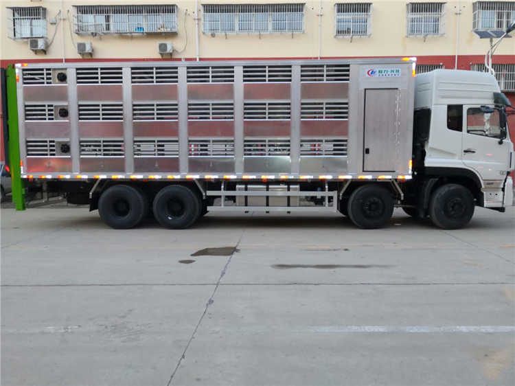 9.6米鋁合金大型拉豬車,全鋁合金車身,三層,混合隔倉,可開合側(cè)窗,高轉(zhuǎn)速防水通風(fēng)排風(fēng)扇,機(jī)組,噴淋,喂食,監(jiān)控,垂直升降尾板?蛇x裝功能空氣過濾,智能發(fā)電機(jī),加層,后開雙門,不帶混合隔倉,加熱。