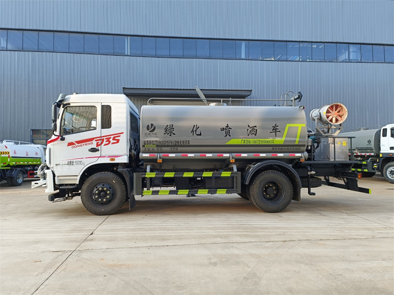 東風(fēng)12噸霧炮灑水車產(chǎn)品標(biāo)配前噴(鴨嘴)、后沖、后灑、側(cè)噴、后置式工作 平臺,平臺上配置綠化水炮(可 360°旋轉(zhuǎn),既可以調(diào)成柱狀,也可 以調(diào)成霧狀,更可以調(diào)成直沖狀、大雨、中雨、小雨、毛毛雨),配 備優(yōu)質(zhì)大功率專用灑水泵(可自吸自排,可從河里或池塘抽水到罐體), 取力器,雜物過濾網(wǎng),消防接口,自流球閥系統(tǒng)、取力器、球閥、濾網(wǎng) 均為國家標(biāo)準(zhǔn)產(chǎn)品,主管道加粗,法蘭墊、法蘭盤加厚,大通徑球閥。 整體具備性能優(yōu)良安全可靠、效率高、流量大、維修方便等特點(diǎn)