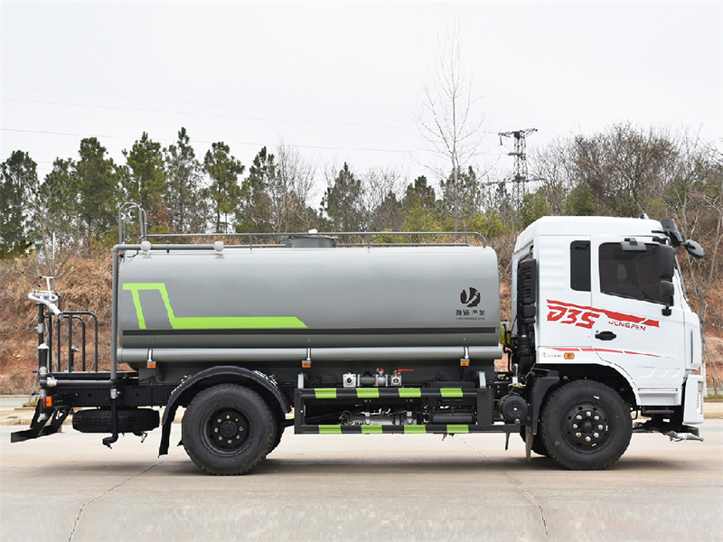 東風(fēng)12噸灑水車產(chǎn)品標(biāo)配前噴(鴨嘴)、后沖、后灑、側(cè)噴、后置式工作 平臺(tái),平臺(tái)上配置綠化水炮(可 360°旋轉(zhuǎn),既可以調(diào)成柱狀,也可 以調(diào)成霧狀,更可以調(diào)成直沖狀、大雨、中雨、小雨、毛毛雨),配 備優(yōu)質(zhì)大功率專用灑水泵(可自吸自排,可從河里或池塘抽水到罐體), 取力器,雜物過(guò)濾網(wǎng),消防接口,自流球閥系統(tǒng)、取力器、球閥、濾網(wǎng) 均為國(guó)家標(biāo)準(zhǔn)產(chǎn)品,主管道加粗,法蘭墊、法蘭盤加厚,大通徑球閥。 整體具備性能優(yōu)良安全可靠、效率高、流量大、維修方便等特點(diǎn)。