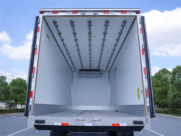 歐航6米8冷藏車廂體配置為:斷橋隔溫工藝,整體結(jié)構(gòu)框架,內(nèi)外面料為3mm新款啞光玻璃鋼夾保溫層真空復(fù)合而成,廂體厚度為8cm,最新款鋁合金包邊型材,型材局部厚度為4mm(鋼制鉚釘加固),廂體內(nèi)部采用2個LED照明燈及廂體示寬燈,后門框不銹鋼材質(zhì),門框密封條為三元乙丙橡膠材質(zhì),加厚型不銹鋼合頁及鎖件;副梁為Q700車用大梁鋼,15mm厚大梁墊皮,加裝防撞膠塊,不銹鋼門鎖件,配后雙開門,副駕駛一側(cè)居中靠前開單側(cè)門一個,帶2個排水孔。