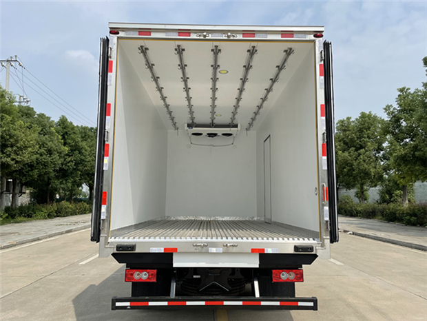 奧鈴排半5米2冷藏車廂體配置為:斷橋隔溫工藝,整體結(jié)構(gòu)框架,內(nèi)外面料為3mm新款啞光玻璃鋼夾保溫層真空復(fù)合而成,廂體厚度為8cm,最新款鋁合金包邊型材,型材局部厚度為4mm(鋼制鉚釘加固),廂體內(nèi)部采用2個LED照明燈及廂體示寬燈,后門框不銹鋼材質(zhì),門框密封條為三元乙丙橡膠材質(zhì),加厚型不銹鋼合頁及鎖件;副梁為Q700車用大梁鋼,15mm厚大梁墊皮,加裝防撞膠塊,不銹鋼門鎖件,配后雙開門,副駕駛一側(cè)居中靠前開單側(cè)門一個,帶2個排水孔。