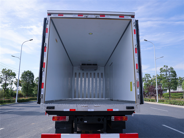 解放J6L 6米8冷藏車(chē)廂體配置為:斷橋隔溫工藝,整體結(jié)構(gòu)框架,內(nèi)外面料為3mm新款啞光玻璃鋼夾保溫層真空復(fù)合而成,廂體厚度為8cm,最新款鋁合金包邊型材,型材局部厚度為4mm(鋼制鉚釘加固),廂體內(nèi)部采用2個(gè)LED照明燈及廂體示寬燈,后門(mén)框不銹鋼材質(zhì),門(mén)框密封條為三元乙丙橡膠材質(zhì),加厚型不銹鋼合頁(yè)及鎖件;副梁為Q700車(chē)用大梁鋼,15mm厚大梁墊皮,加裝防撞膠塊,不銹鋼門(mén)鎖件,配后雙開(kāi)門(mén),副駕駛一側(cè)居中靠前開(kāi)單側(cè)門(mén)一個(gè),帶2個(gè)排水孔。